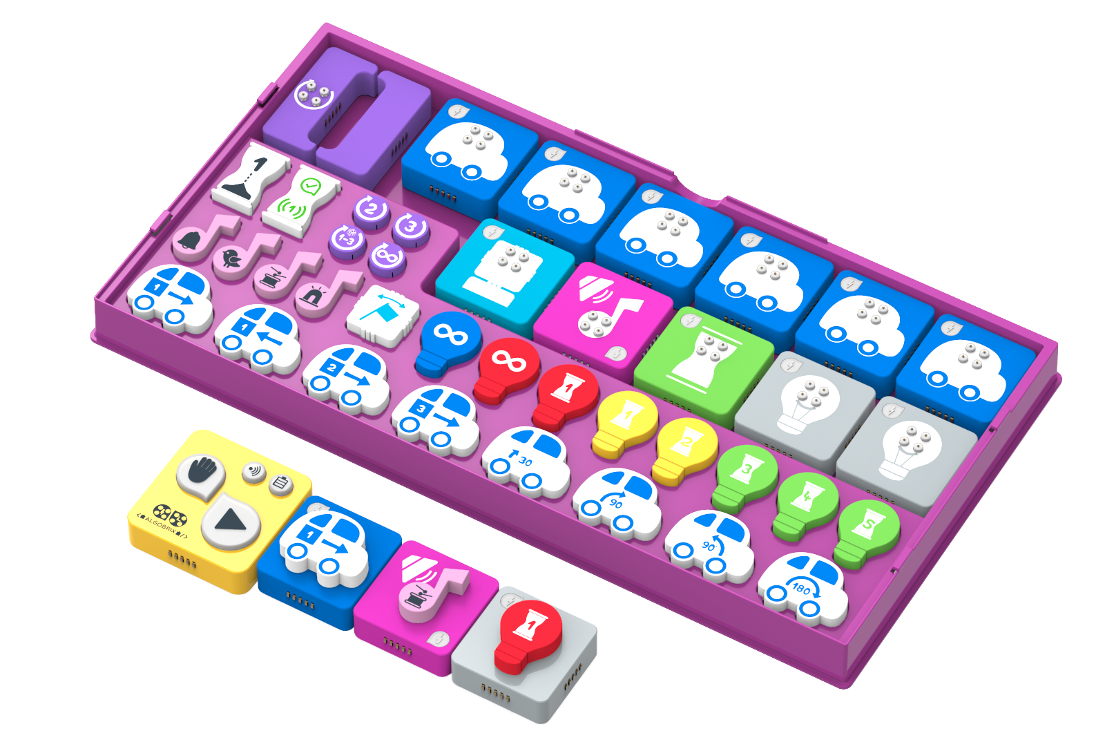 A Young Engineers tem o orgulho de apresentar o AlgoBuddy: um programa de codificação totalmente físico para pequenos engenheiros. O AlgoBuddy oferece uma proposta única para familiarizar crianças pré-escolares com os fundamentos do pensamento algorítmico e da linguagem de codificação. Usando a linguagem de programação intuitiva e interativa da AlgoBrix®, as crianças praticarão programação comandando o AlgoBuddy para executar uma variedade de tarefas emocionantes inspiradas em nossa vida diária.